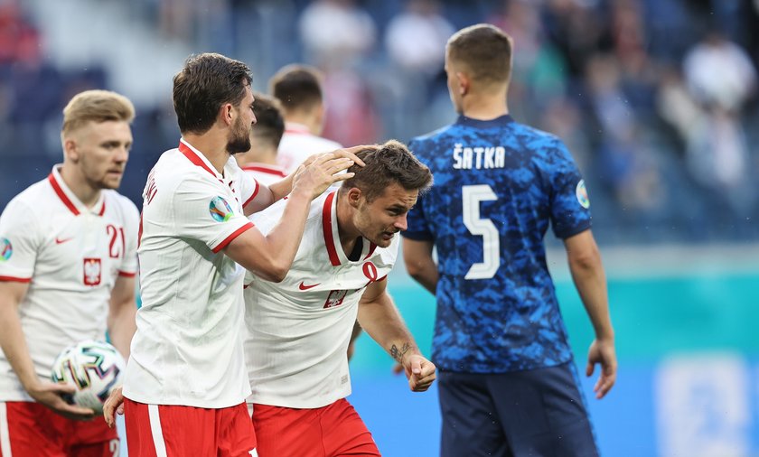 Reprezentanci polski na murawie przed meczem ze słowacją (euro 2020).
